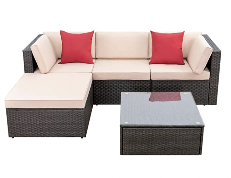 This outdoor sectional sofa is both sturdy, durable and stylish all in one. Whether it’s a family dinner or a weekend gathering with friends, this set provides plenty of seating for everyone. You can purchase this modern set here.