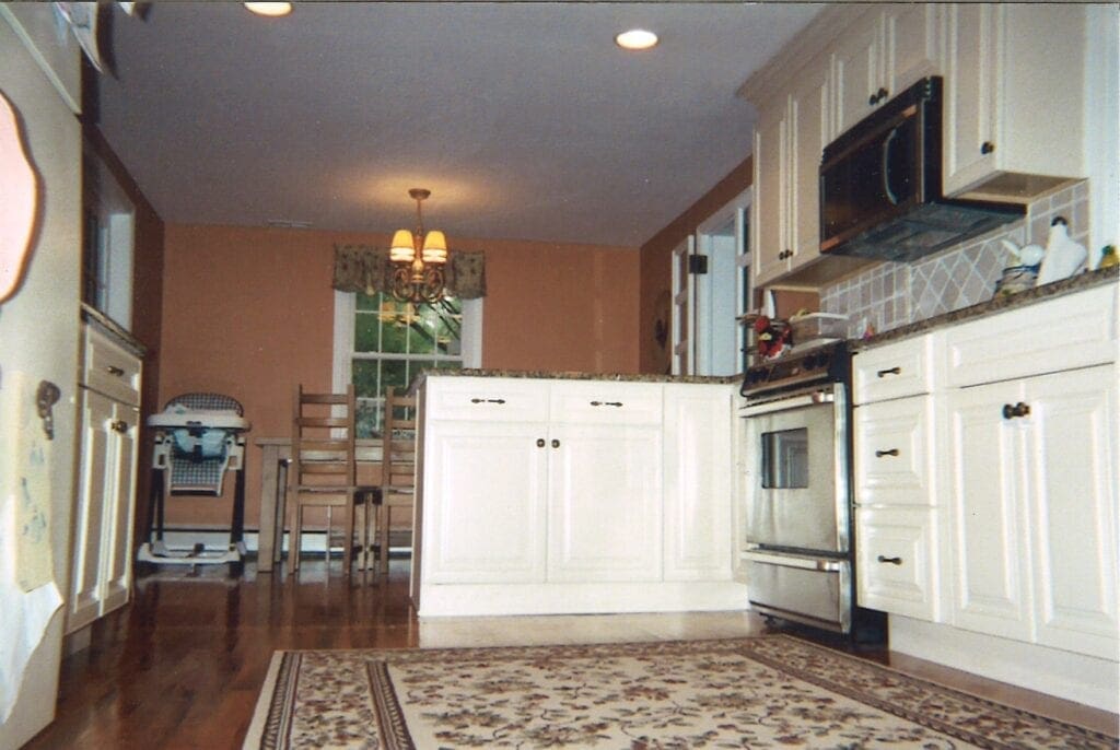 This Moorestown family needed a much larger living area for a new family room. Our solution was to use the existing garage as a family room because it was a large space and would be close to the kitchen. This created plenty more space on the first floor. In the new family room, we installed beautiful, large windows and a door for access to the backyard. We also extended the hot water baseboard into this new living area. Along with the new family room, we renovated their existing kitchen with a new peninsula and immaculate hardwood flooring – which tied all of the existing appliances together.
