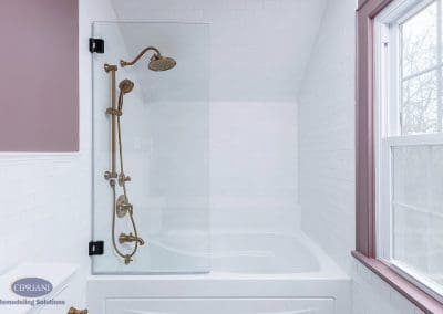 This bathroom now serves their entire family well – especially the little one who enjoys bath time in their new open tub!