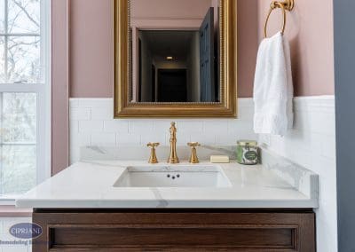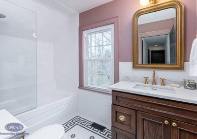 This Moorestown family chose us to remodel their primary bathroom. The homeowner had a wonderful sense of what they were looking for, so Kelsey worked closely with her to choose simply classic materials, including brushed gold accents, to bring the space to life.