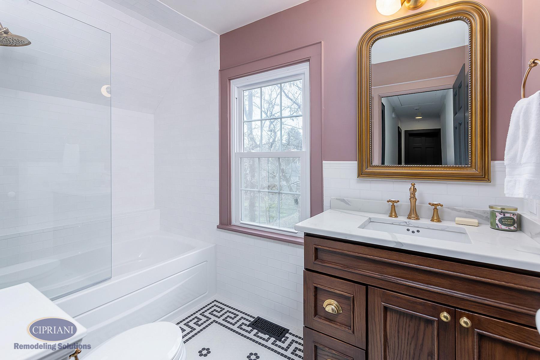 This bathroom now serves their entire family well – especially the little one who enjoys bath time in their new open tub!