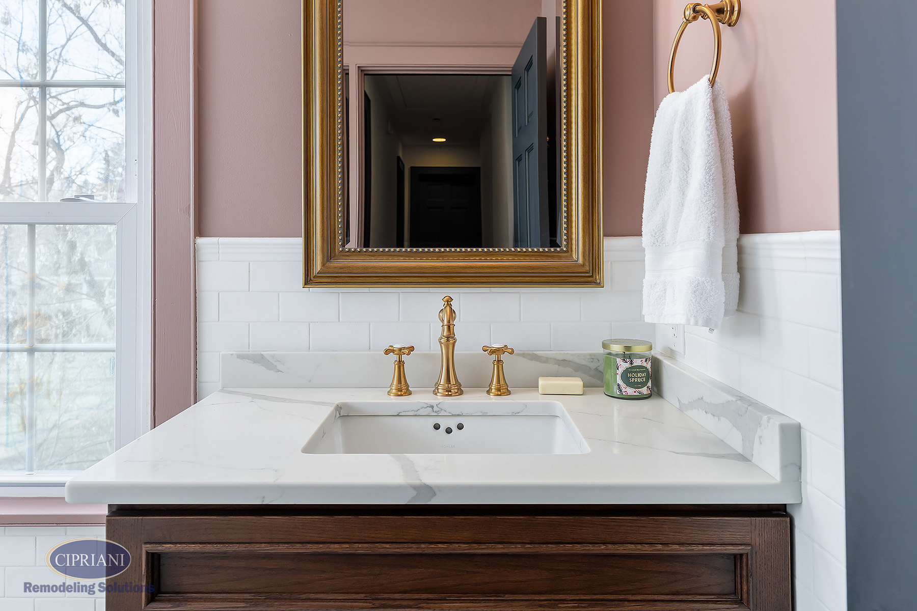 This Moorestown family chose us to remodel their primary bathroom. The homeowner had a wonderful sense of what they were looking for, so Kelsey worked closely with her to choose simply classic materials, including brushed gold accents, to bring the space to life.