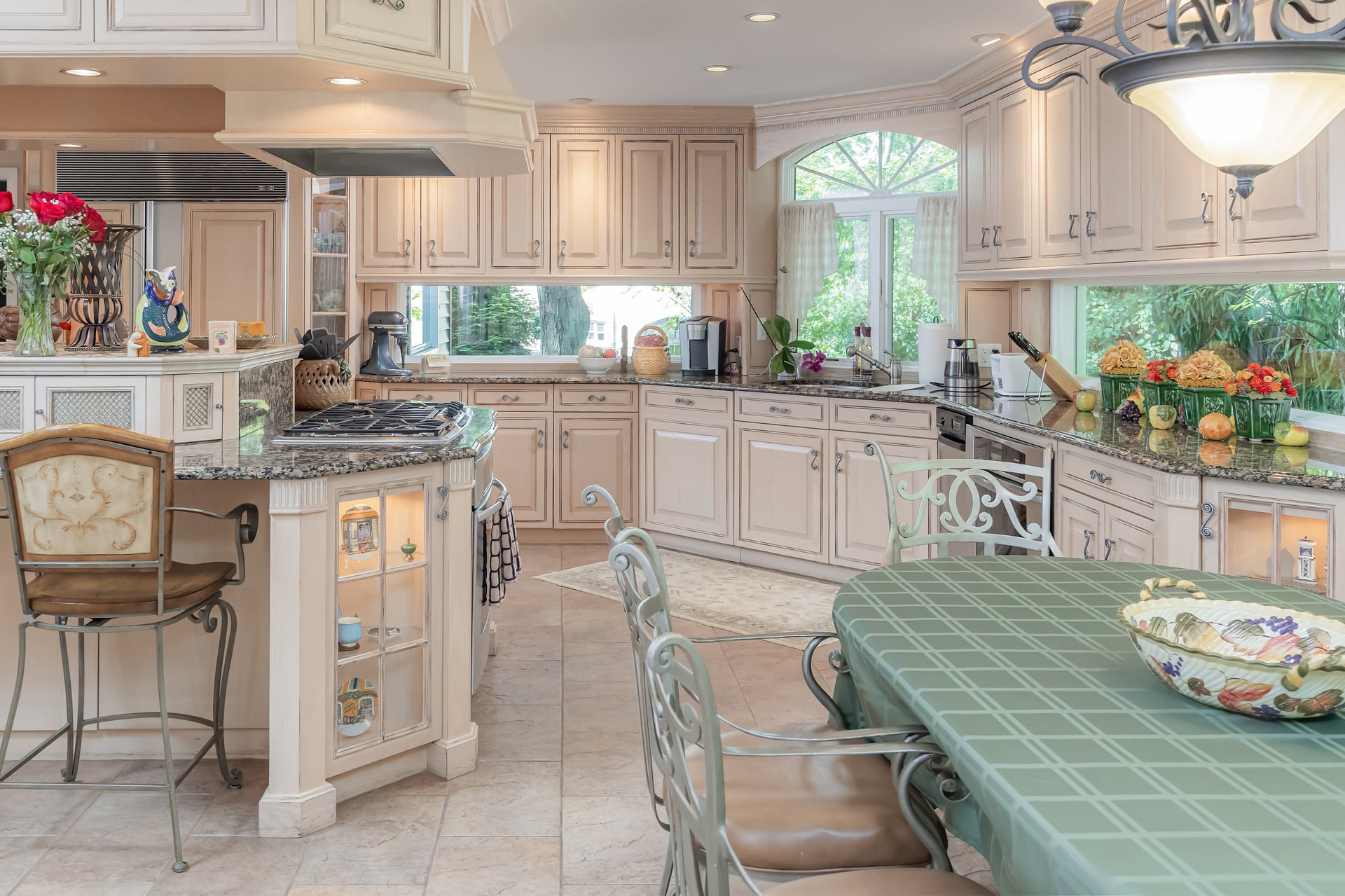 This Cherry Hill home features a warm kitchen and sitting room addition that blends timeless style with everyday comfort. Designed to highlight the backyard view, the layout emphasizes openness, balance, and natural light. The expanded kitchen flows seamlessly into the sitting area, creating a bright, classic space that feels elegant and inviting.
