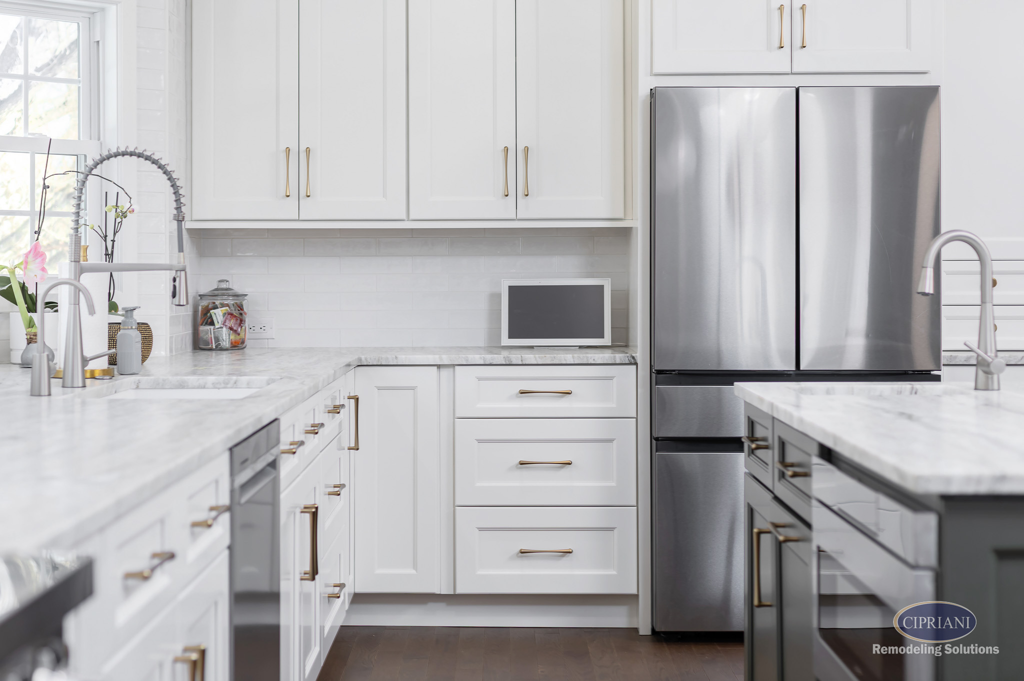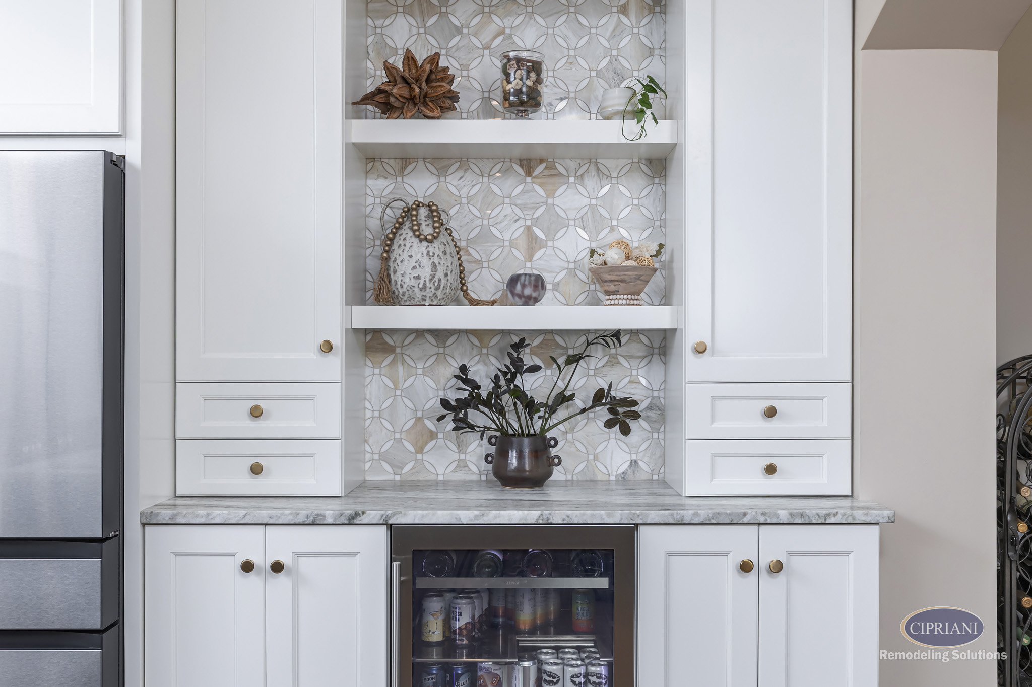 Custom White Cabinetry: Full-height cabinetry maximizes storage while maintaining a clean, classic aesthetic designed for long-term appeal.