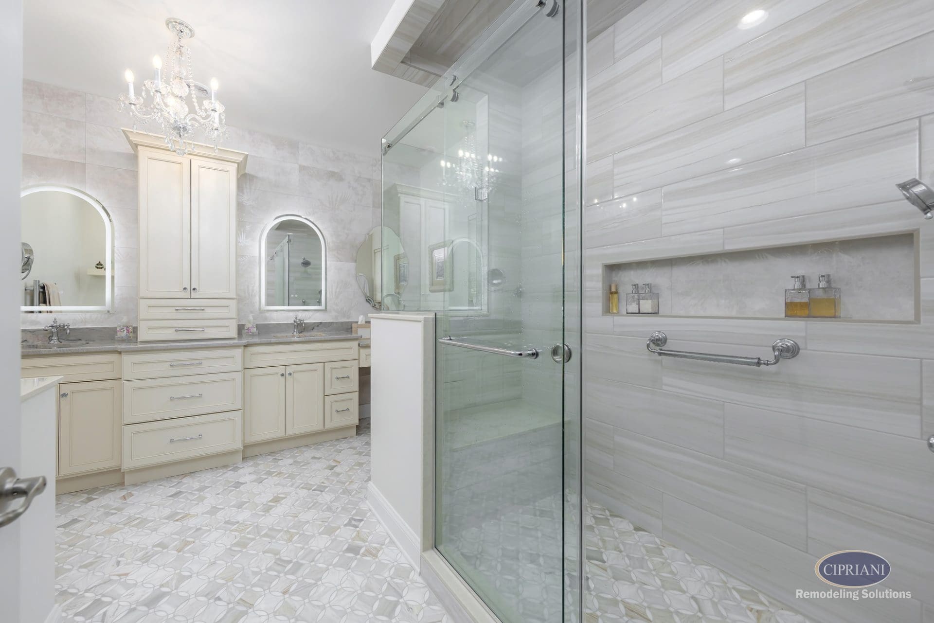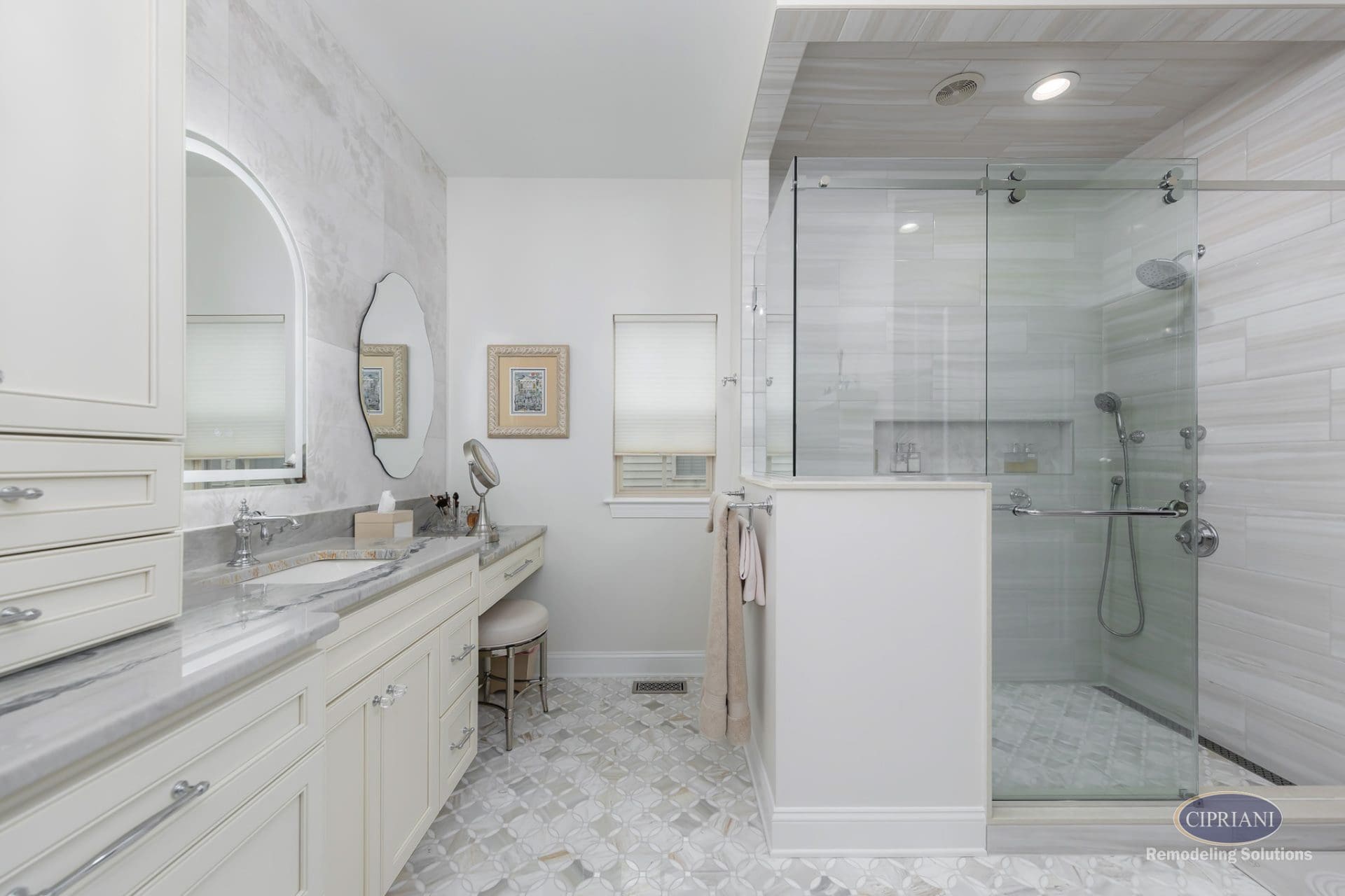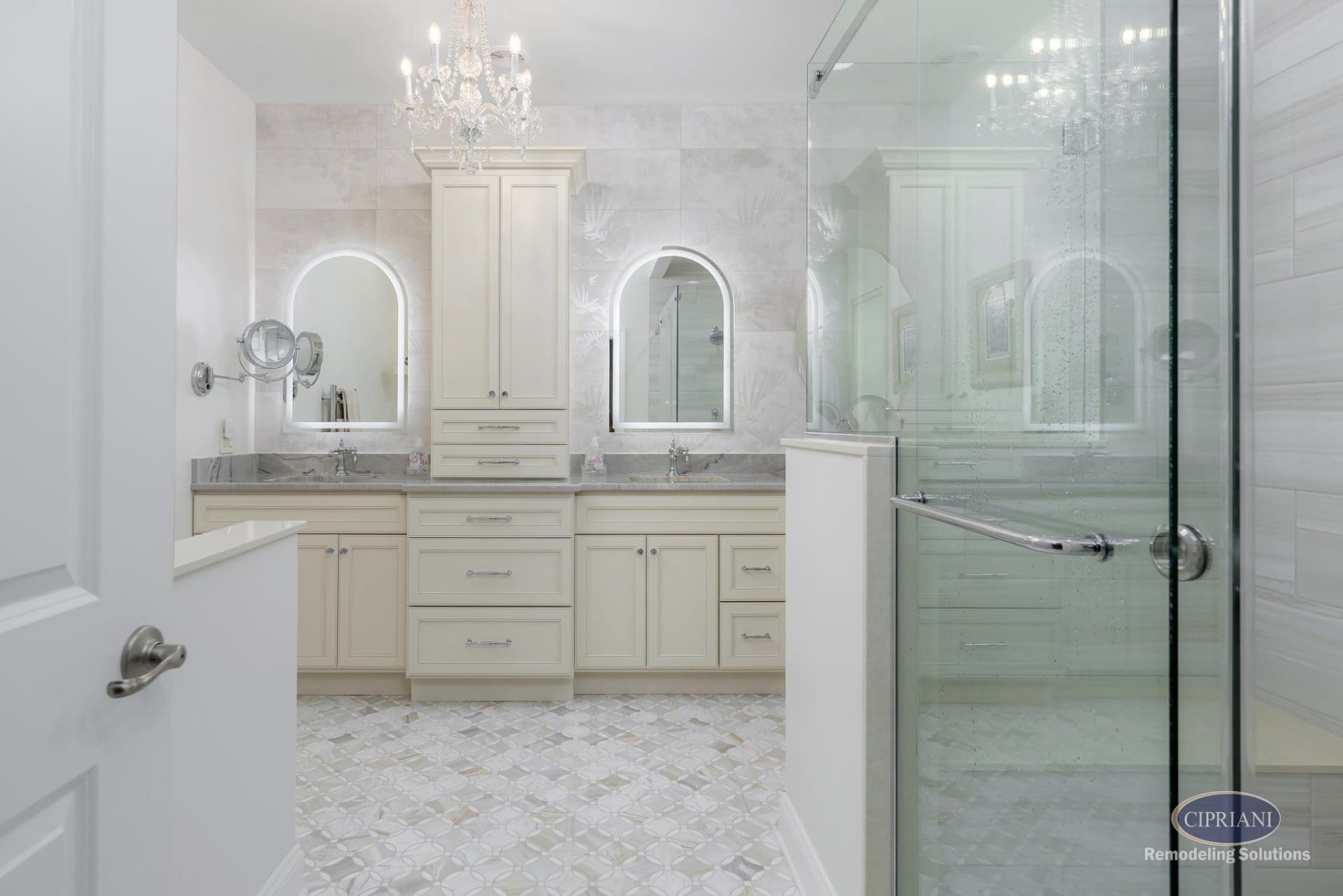 These repeat homeowners returned to Cipriani to upgrade their outdated primary bathroom. Frustrations with construction quality and concerns about potential leaks prompted the remodel. With a clear sense of personal style, the homeowner trusted our experienced team to deliver a glamorous, elegant space filled with thoughtful, personal touches.