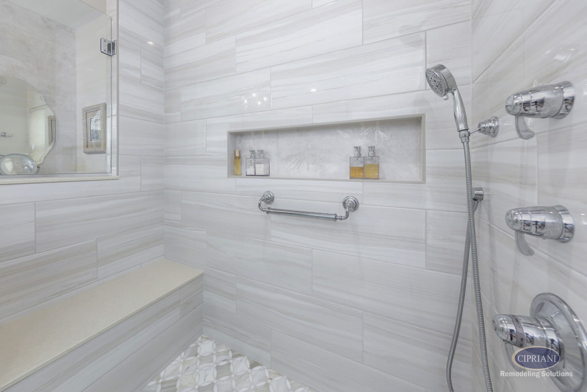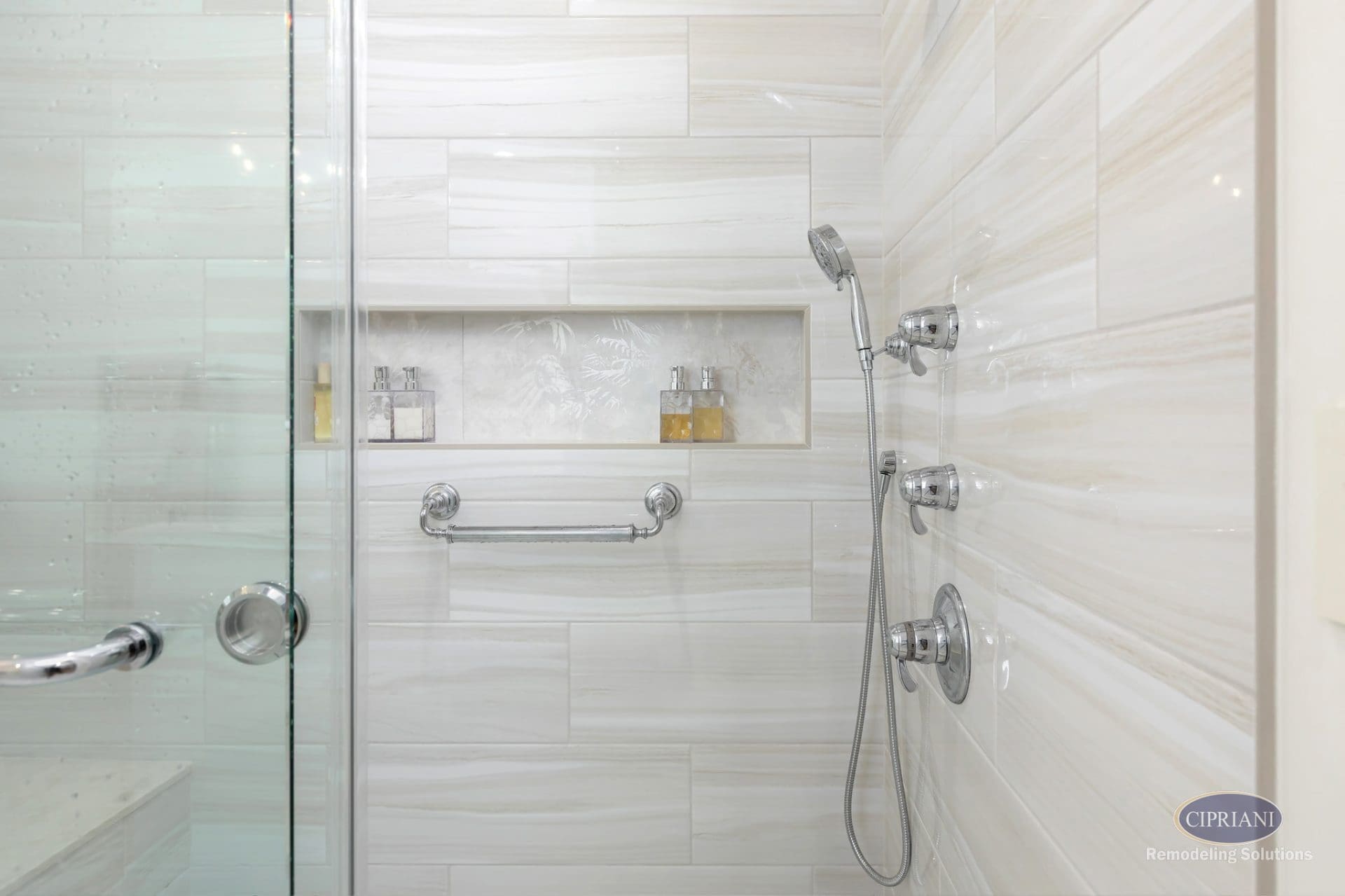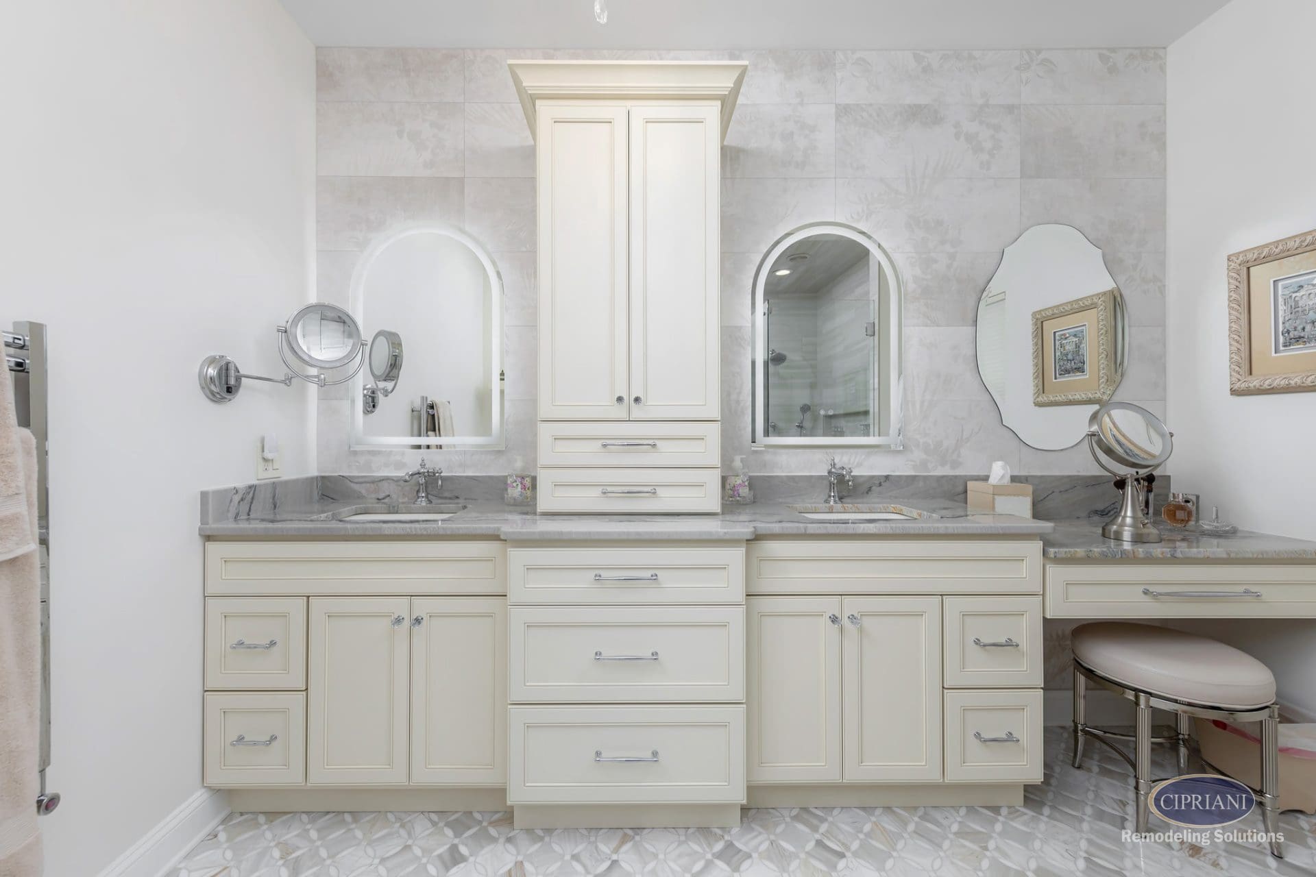 These repeat homeowners returned to Cipriani to upgrade their outdated primary bathroom. Frustrations with construction quality and concerns about potential leaks prompted the remodel. With a clear sense of personal style, the homeowner trusted our experienced team to deliver a glamorous, elegant space filled with thoughtful, personal touches.