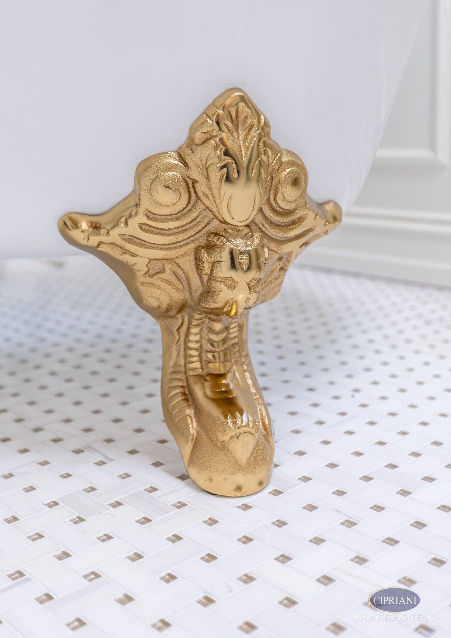 Freestanding Soaking Tub: Elegant clawfoot tub creates a luxurious focal point for relaxation and spa-like comfort.
