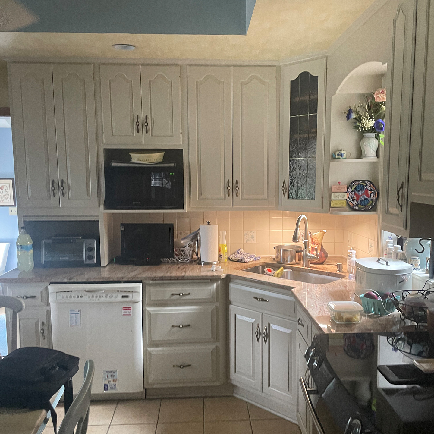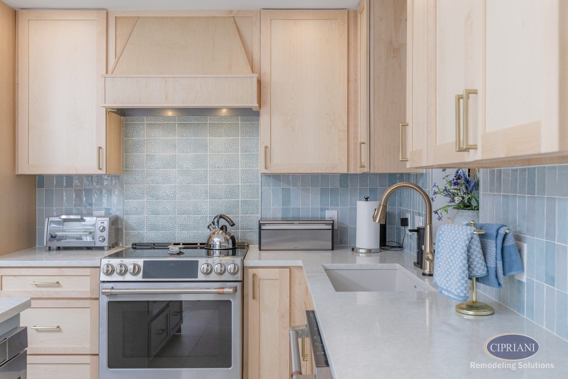 - Multi-Tone Backsplash – Features an accent design above the stove.