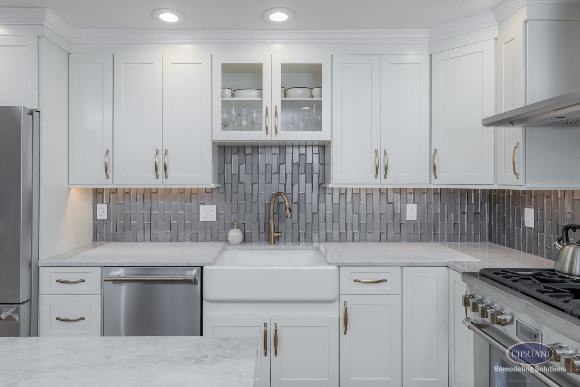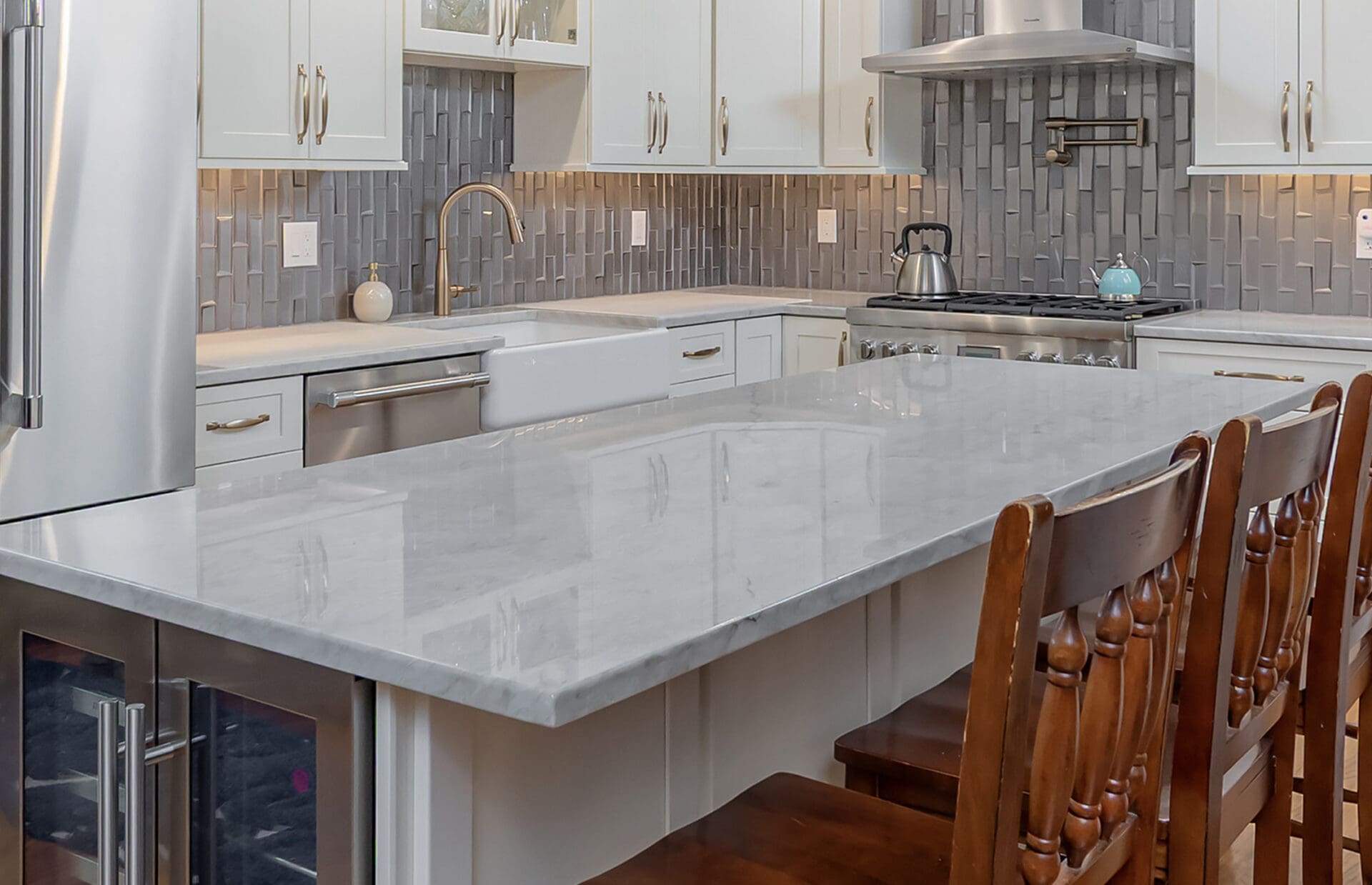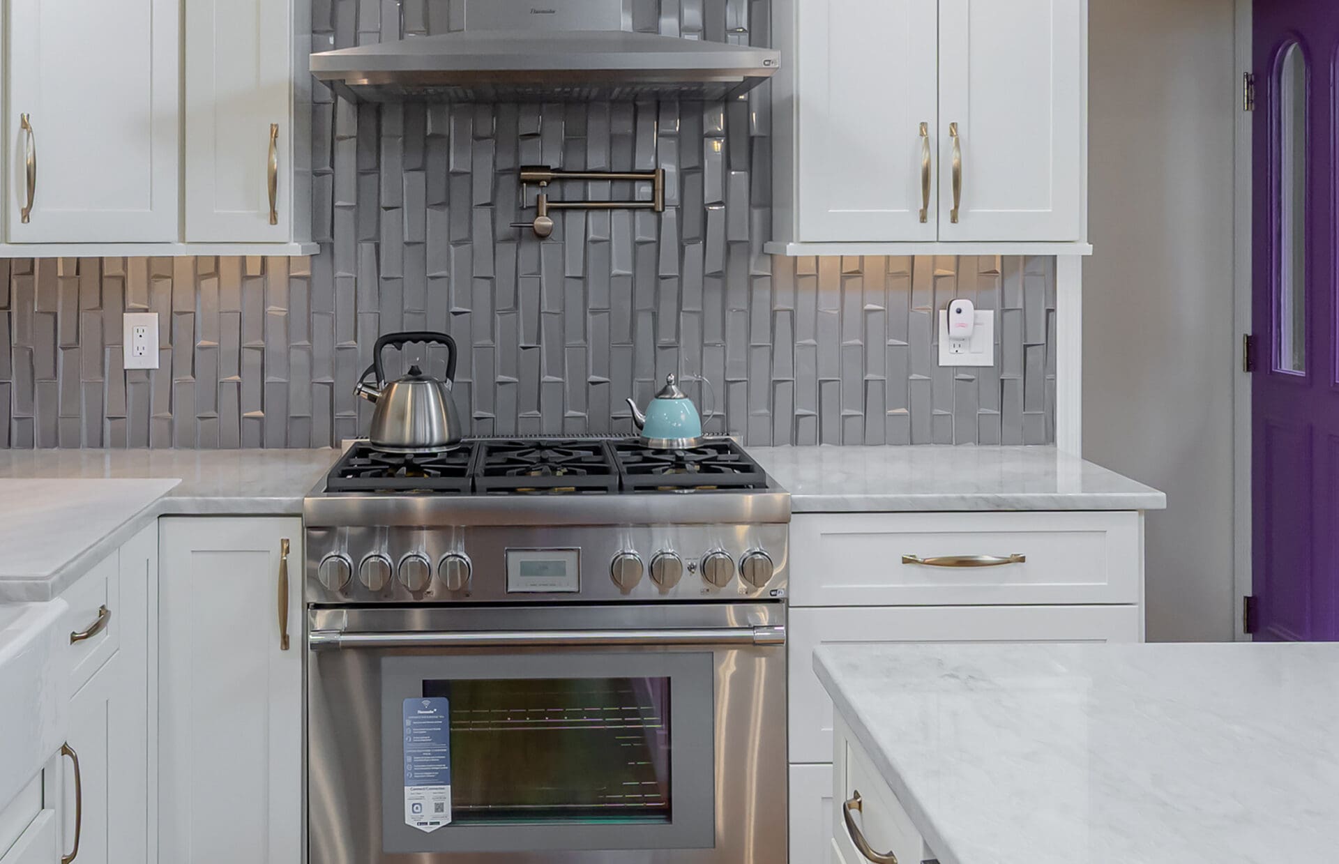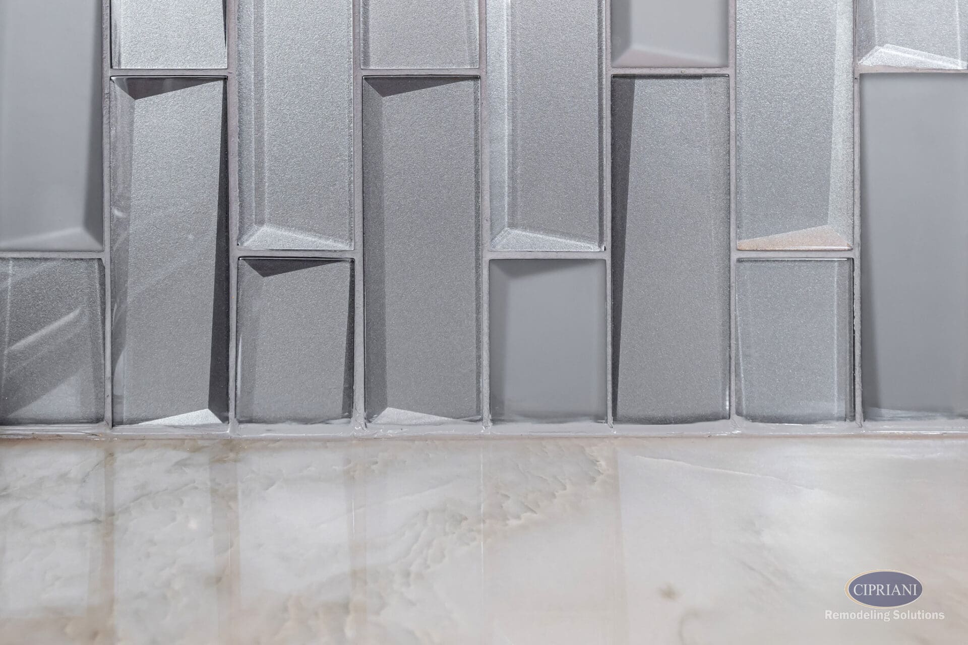 Layered Gray Tile Backsplash – A dimensional tile backsplash adds subtle texture and contrast, creating visual interest without overpowering the overall design.